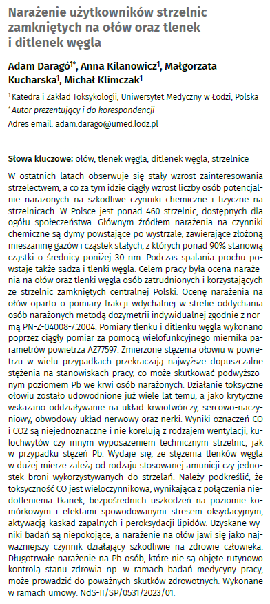 „Narażenie użytkowników strzelnic zamkniętych na ołów oraz tlenki węgla”,